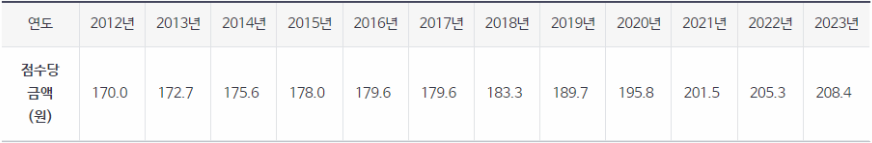 부과 요소별 부과 점수(소득 + 재산(전·월세 포함) + 자동차) X 부과 점수당 금액(208.4원)
