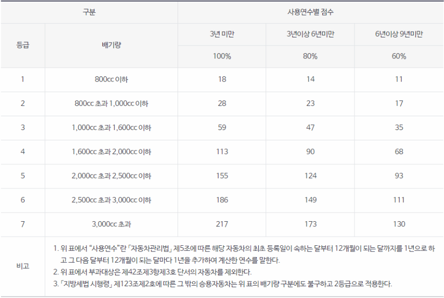 - 자동차 등급별 점수(시행령 제42조 제1항 관련 별표 4)